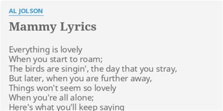 Everything is lovely When you start to roam; The birds are singin', the day that you stray, But later, when you are further away, Things won't seem so lovely When you're all alone; Here's what you'll keep saying When you're far from home: Mammy, Mammy, The sun shines east, the sun shines west, I know where the sun shines best Mammy, My little mammy, My heartstrings are tangled around Alabammy.Al Jolson - My Mammy [Rose of Washington Square] Lyrics