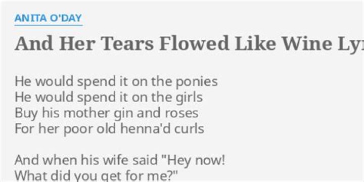 Get lyrics of And her tears flowed like wine song you love. List contains And her tears flowed like wine song lyrics of older one songs and hot new releases. Get known every word of your favorite song or start your own karaoke party tonight :-).