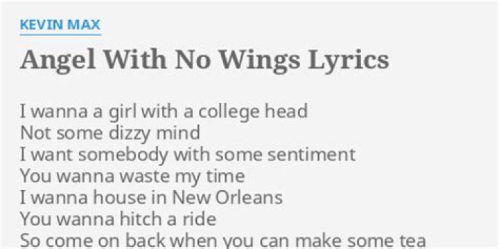 Get lyrics of Angel with no wings song you love. List contains Angel with no wings song lyrics of older one songs and hot new releases. Get known every word of your favorite song or start your own karaoke party tonight :-).