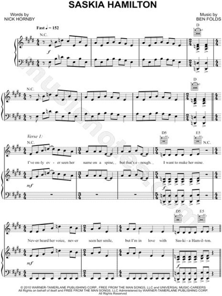 Ben Folds & Nick Hornby – Saskia Hamilton Lyrics