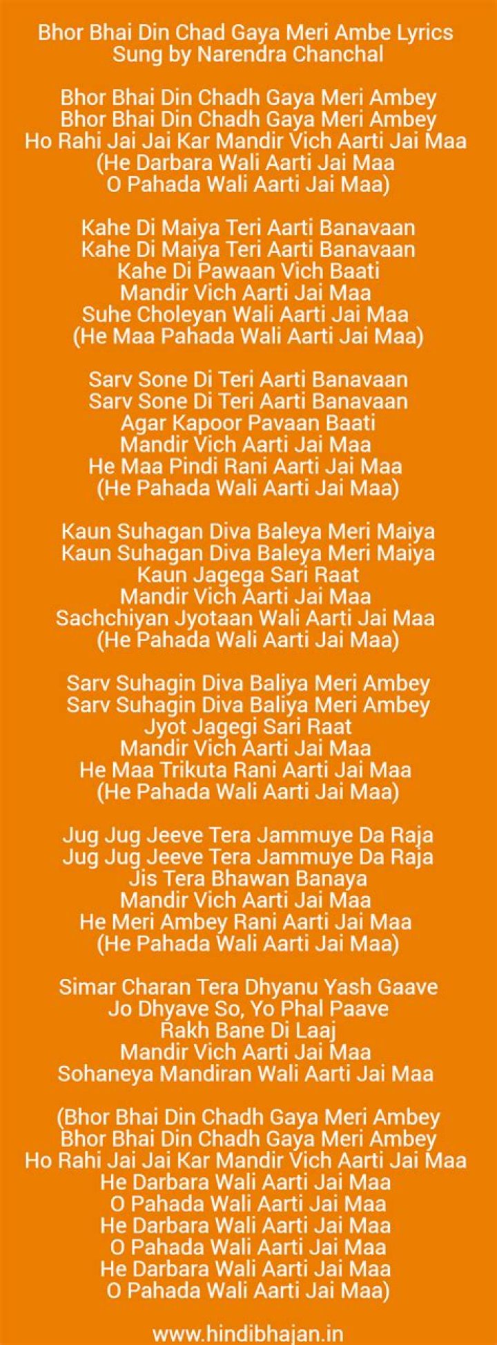 Bhor bhai din chad gaya meri ambe translation in english lyrics