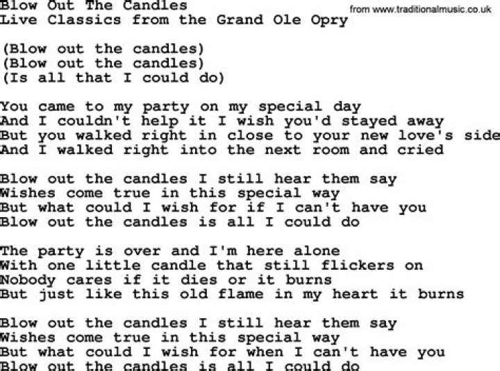 Get lyrics of Blowing out the candles song you love. List contains Blowing out the candles song lyrics of older one songs and hot new releases. Get known every word of your favorite song or start your own karaoke party tonight :-).