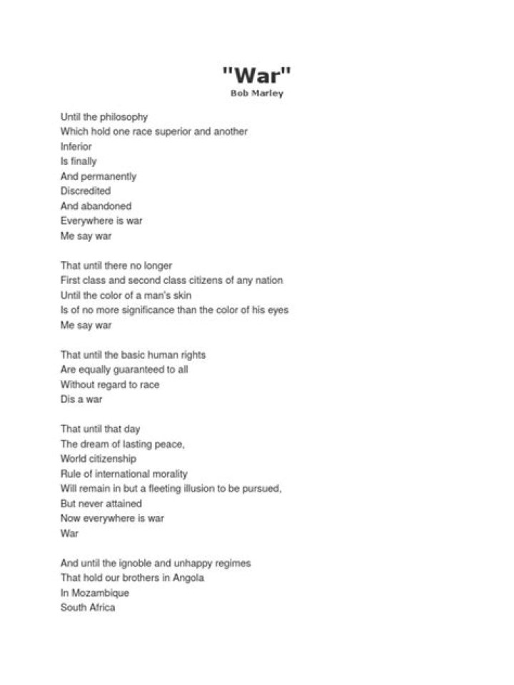 Bob marley pdf war lyrics