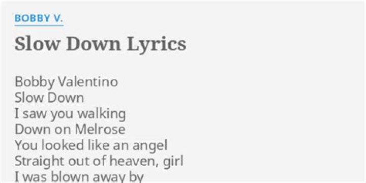Lyrics to "Slow Down" song by BOBBY VALENTINO: I saw you walking Down on Melrose You looked like an angel Straight out of heaven, girl I wa...BOBBY VALENTINO LYRICS - If I Had My Way