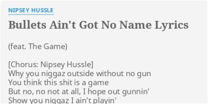 Lyrics to "Bullets Got No Name" song by MASTER P: Hahahaha We got a bag full of bullets in this bitch with no name on them You know what I'm saying...NIPSEY HUSSLE LYRICS - Bullets Rmx