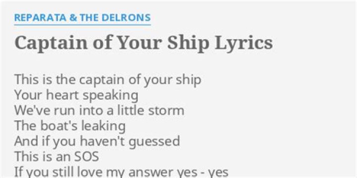 Get lyrics of Captain of your ship song you love. List contains Captain of your ship song lyrics of older one songs and hot new releases. Get known every word of your favorite song or start your own karaoke party tonight :-).