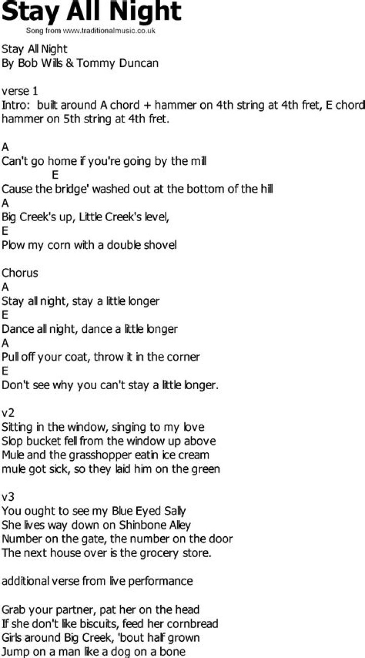 Country song with all night lyrics