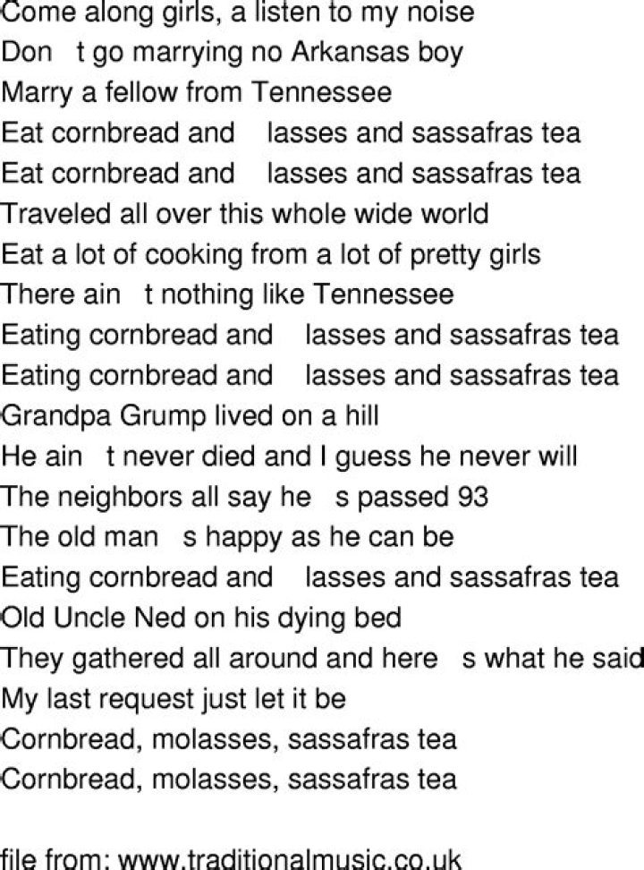 Get lyrics of Country songs sweet tea cornbread song you love. List contains Country songs sweet tea cornbread song lyrics of older one songs and hot new releases. Get known every word of your favorite song or start your own karaoke party tonight :-).