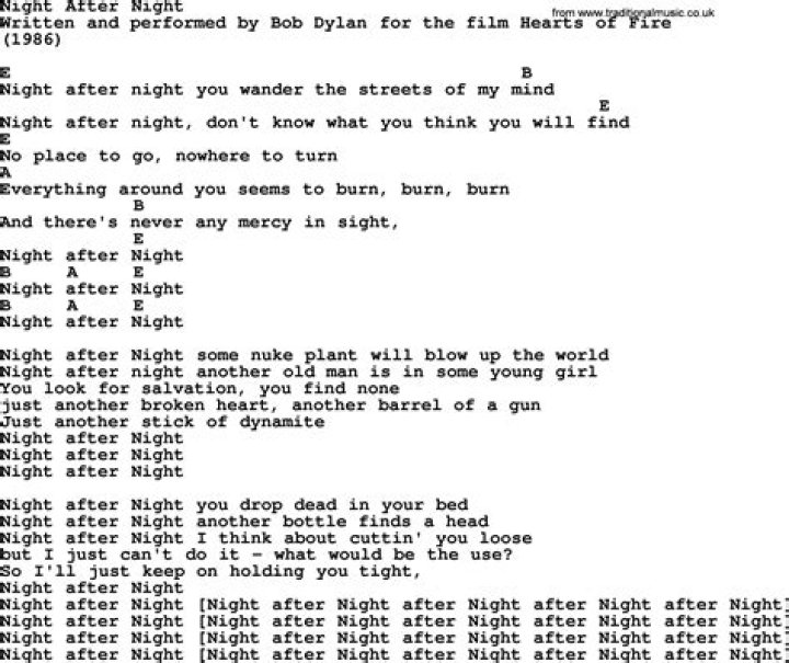 Lyrics to 'Night After Night' by Primal Fear. Can't get rid of this taste of blood / Can't erase the face that hunts me / A call from the shadows below / AStevie Ray Vaughan Lyrics - Crossfire