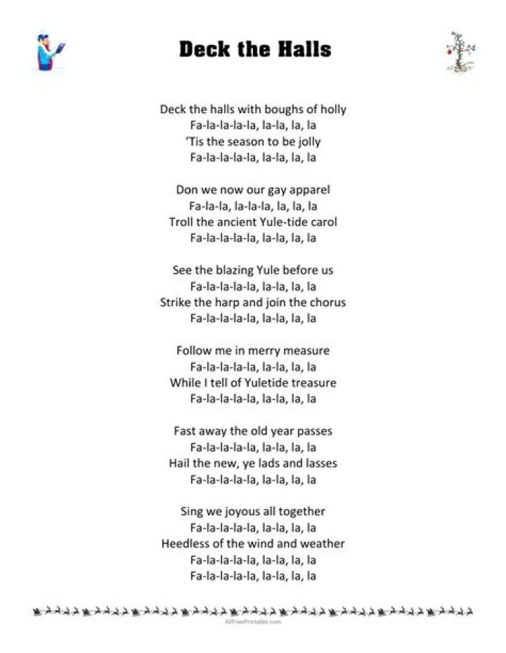 Lyrics to 'Deck The Halls' by Christmas Carols: 'Tis the season to be jolly Fa-la-la-la-la, la-la-la-la Christmas Carols - Deck The Halls Lyrics | MetroLyrics Please click here if you are not redirected within a few seconds.Glee Cast - Deck The Rooftop Lyrics