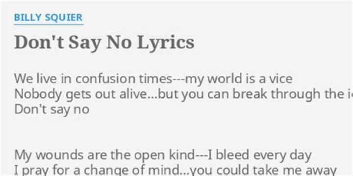 Lyrics to 'Don't Say No' by Keb Mo. Standin' on the corner of my life, you are / Always lookin' out but never goin' far / Sittin' on the sideline for anotherBILLY SQUIER - DON'T SAY NO LYRICS