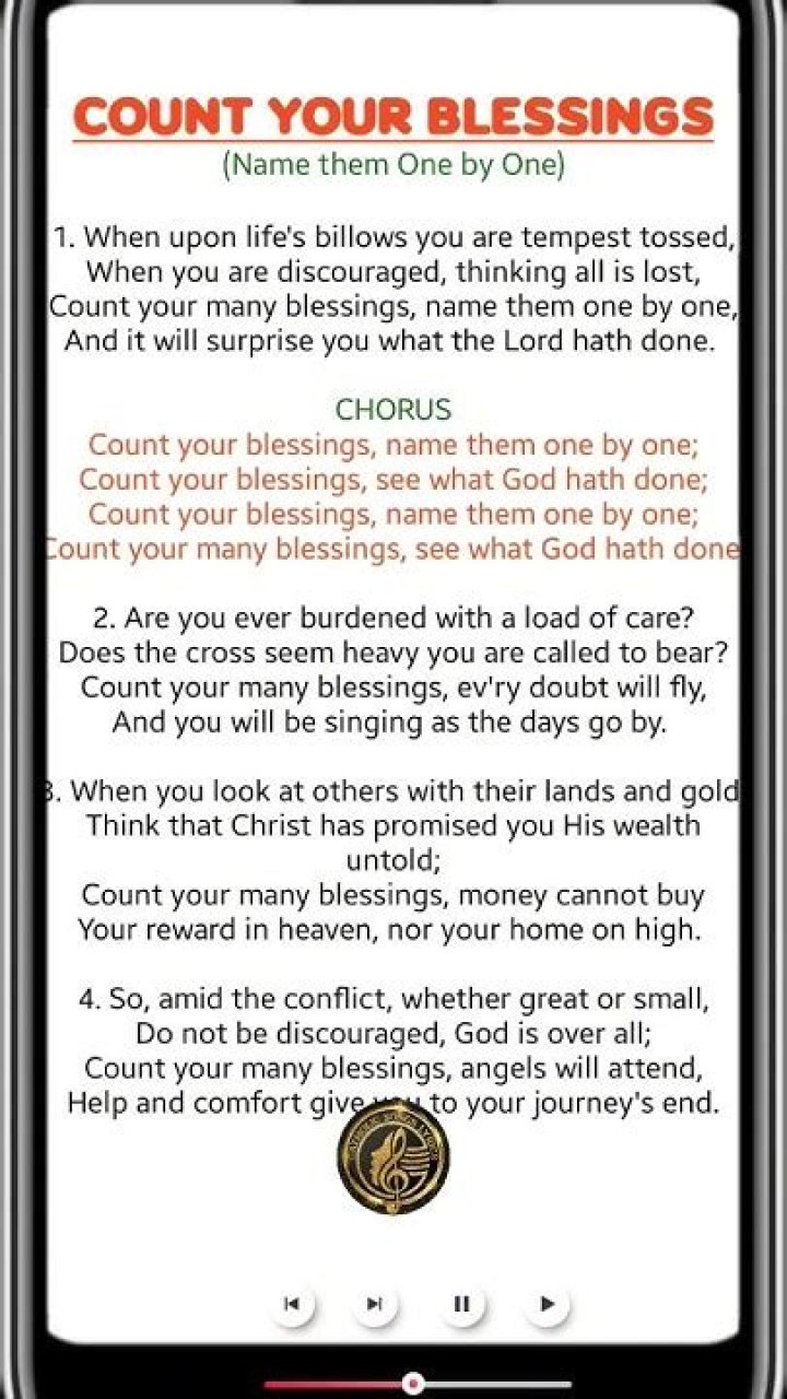 Full and accurate LYRICS for "Count Your Blessings" from "Gold City": Count your blessings when you're feeling blue, It's surprising what a little bit of ...SAMSONG - COUNT YOUR BLESSING LYRICS