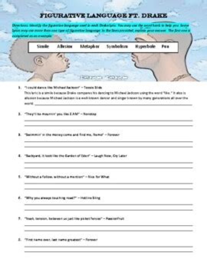 Get lyrics of Drake rap songs with figurative language song you love. List contains Drake rap songs with figurative language song lyrics of older one songs and hot new releases. Get known every word of your favorite song or start your own karaoke party tonight :-).