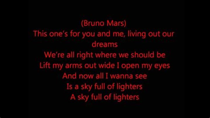 I open my eyes And now All I wanna see Is a sky full of lighters A sky full of lighters [Eminem] By the time you hear this I will have already spiraled up I would never do nothin to let you cowards fuck my world up If I was you I would duck or get struck like lighting fighters Keep fighting Put your lighters up Point em' skyward UH!deCODED: Lighters - Bad Meets Evil ft. Bruno Mars ...