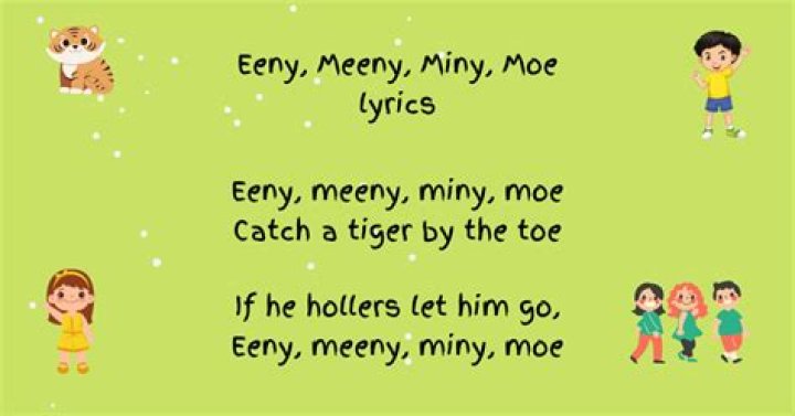 Lyrics to Eeny, Meeny, Miny, Moe Lyricsmania staff is working hard for you to add Eeny, Meeny, Miny, Moe lyrics as soon as they'll be released by Kodak Black, check back soon! In case you have the lyrics to Eeny, Meeny, Miny, Moe and want to send them to us, fill out the following form:Melanie Martinez - Tag, You're It Lyrics
