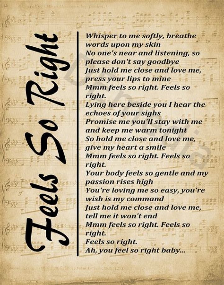 Lyrics to 'Feels So Right' by Alabama. Whisper to me softly, breathe words upon my skin / No one's near and listening, so please don't say goodbye / Just holdLLOYD LYRICS - Feel So Right