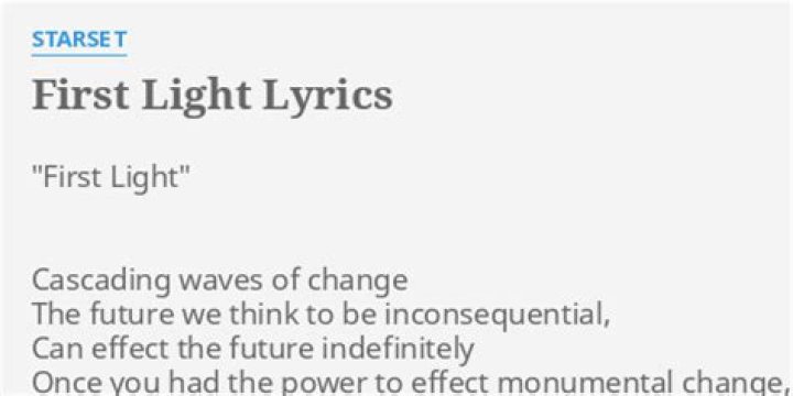 Lyrics to "First Light" song by STARSET: Cascading waves of change The future Events we think to be inconsequential, Can affect the future un...MY MORNING JACKET LYRICS - First Light