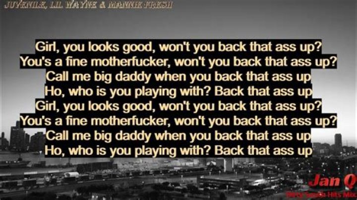 Girl you look good won't you back that ass up You a fine mother fucker won't you back that ass up Call me Big daddy won't you back that ass up Girl who is you playing with, back that ass up You working with some ass yeah, you bad yeah Girl you working with some ass yeah, you bad yeah I know he messed up But a let a real nigga make it rightJUVENILE - BACK THAT ASS UP LYRICS