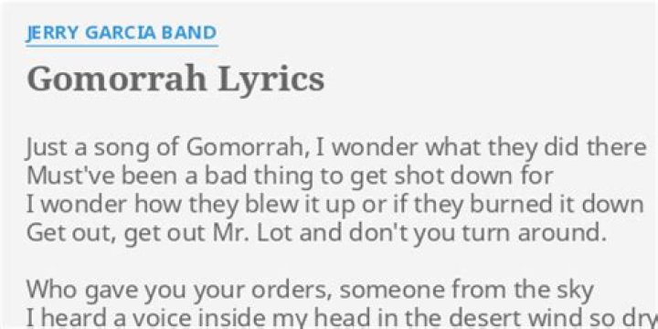 Lyrics for Gomorrah by Jerry Garcia Band. Just a song of Gomorrah I wonder what they did there Must've been a bad thing To get shot down for Wonder how ...Monasteries - The Gomorrah Verses lyrics