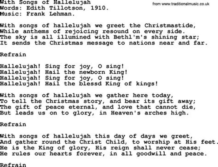 Get lyrics of Hallelujah christmas version song you love. List contains Hallelujah christmas version song lyrics of older one songs and hot new releases. Get known every word of your favorite song or start your own karaoke party tonight :-).