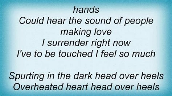 Spurting in the dark head over heels Submit Corrections. AZLyrics. A. Accept Lyrics. album: "Balls To The Wall" (1983) Balls To The Wall. London Leatherboys. Fight It Back. Head Over Heels. Losing More Than You've Ever Had. Love Child. Turn Me On. Losers And Winners. Guardian Of The Night. Winter Dreams.ABBA - Head Over Heels Lyrics