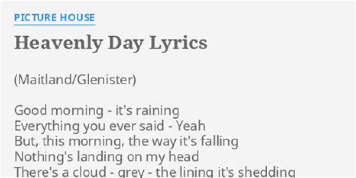 Lyrics to 'Heavenly Day' by Picture House. (Maitland/Glenister) / Good morning - it's raining / Everything you ever said - Yeah / But, this morning, the way.Another Heavenly Day