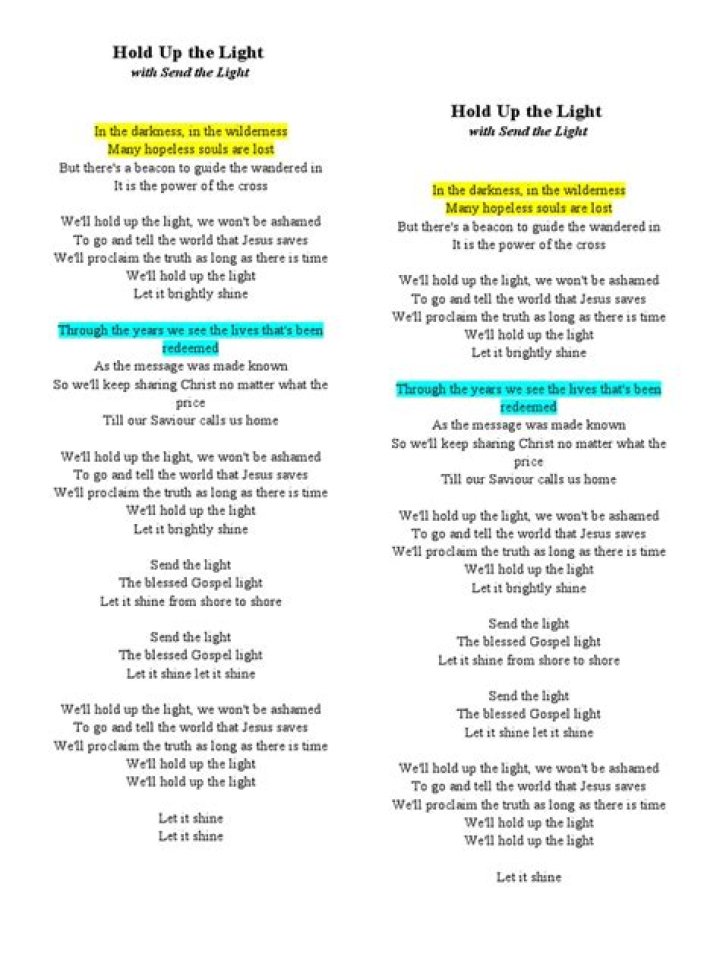 Hold up the light with send the light lyrics
