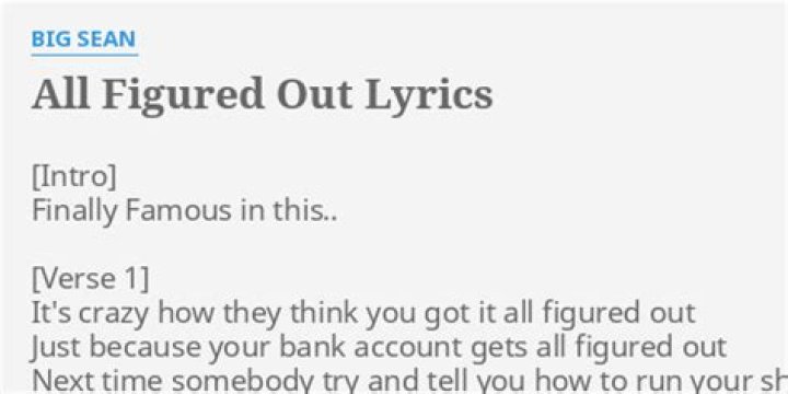 When you broke my heart Could of been another side you were always way too blind I kept tryna stay around but you shot me down Ever wondered if you tried 'Cause all those times you made me cry Took a hit from what we lost Made me move across I wish I would've realized Turn back just to rewind Brought me along for the ride Won't wait by your side You said, Oh, oh, oh, I got it all figured out ...BIG SEAN - ALL FIGURED OUT LYRICS