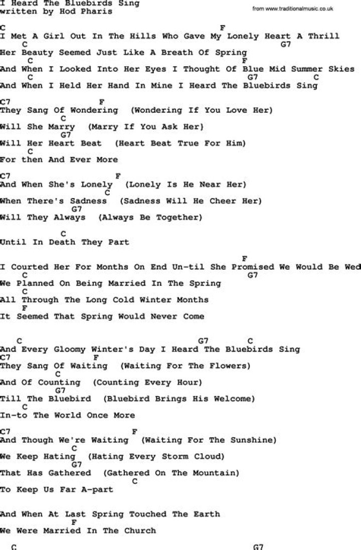 Get lyrics of I heard the bluebirds sing d chords song you love. List contains I heard the bluebirds sing d chords song lyrics of older one songs and hot new releases. Get known every word of your favorite song or start your own karaoke party tonight :-).