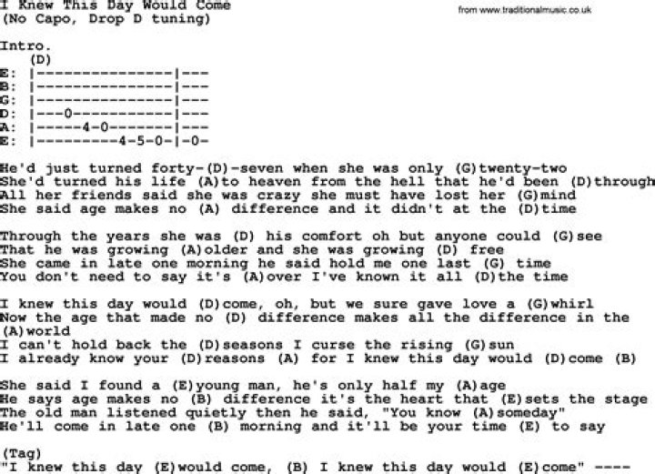 I knew the day would come when lyrics