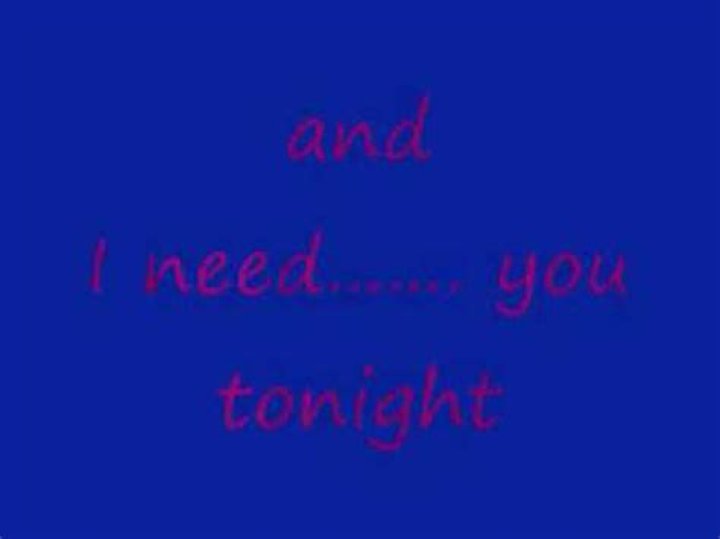 tonight, tonight I wanna see you tonight tonight, tonight I really need you tonight The day was long and the bills are due when can't go on, you know I think of you life is hard, but your love is true it's the only love that takes me out I wanna see you tonight tonight, tonight I wanna see you tonight (I wanna see your smiling face) tonight ...INXS - I NEED YOU TONIGHT LYRICS