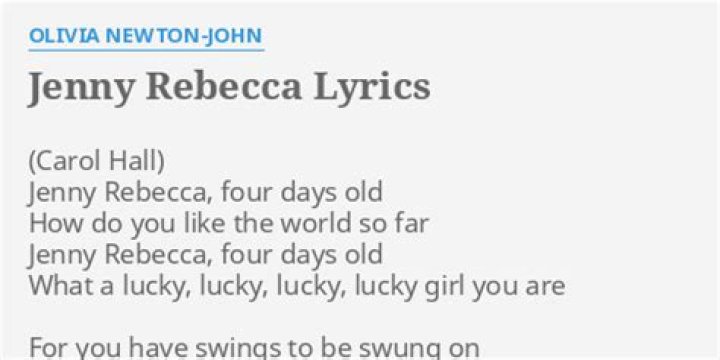 Lyrics to 'Jenny Rebecca' by Barbra Streisand. Jenny rebecca, four days old / How do you like the world so far? / Jenny rebecca, four days old / What a lucky,BARBRA STREISAND LYRICS - Sweet Zoo