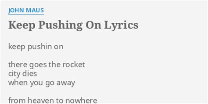 Get lyrics of Keep pushing on song you love. List contains Keep pushing on song lyrics of older one songs and hot new releases. Get known every word of your favorite song or start your own karaoke party tonight :-).