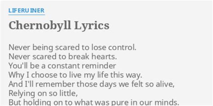 Lyrics to 'Chernobyll' by Liferuiner. Never being scared to lose control. / Never scared to break heartss. / You'll be a constant reminder why I choose to live.Liferuiner - Harvest / Famine lyrics