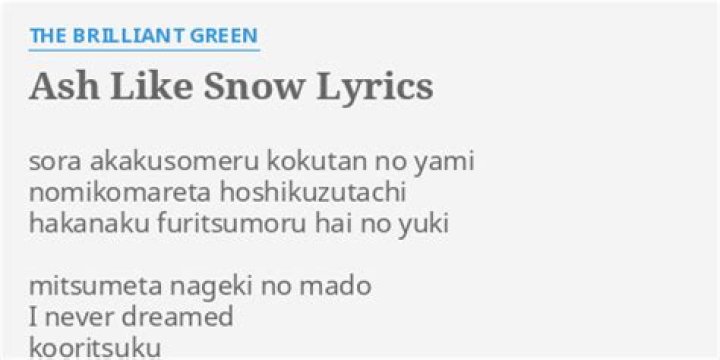 Lyrics to "Ashes Like Snow" song by LILY KERSHAW: Ashes falling like snow As the wind blows the last breathes upon the breeze Ashes falling like snow...Lily Kershaw - Ashes Like Snow lyrics