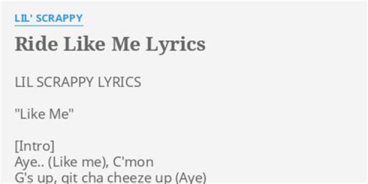 Lyrics to "Like Me" song by LIL SCRAPPY: Aye.. (Like me), C'mon G's up, git cha cheeze up (Aye) You know whudd it is mayn', Uhh (G's up, gi...LIL SCRAPPY LYRICS - Lord Have Mercy