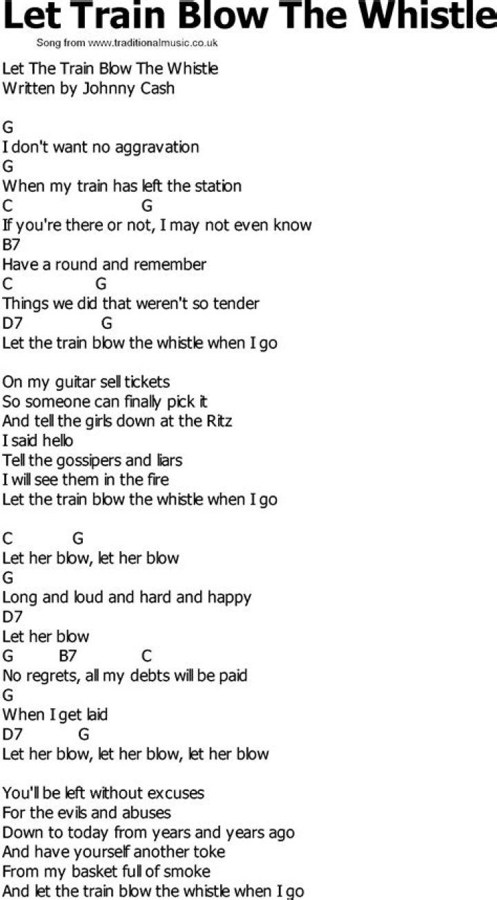 These choices you have and these choices only. When that train rolls in and you step on board. Now that whistle blows, yes its already whinin' If you listen close, ...Johnny Cash - I Heard That Lonesome Whistle Blow Lyrics ...