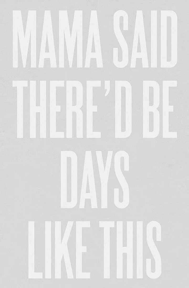 (Mama said, mama said) Mama said there'll be days like this. There'll be days like this my mama said And then she said someone will look at me Like I'm looking at you one day, then I might find I don't want it any old way, so I don't worry 'cause. Mama said there'll be days like this There'll be days like this mama said (Mama said, mama said ...Van Morrison - Days Like This Lyrics
