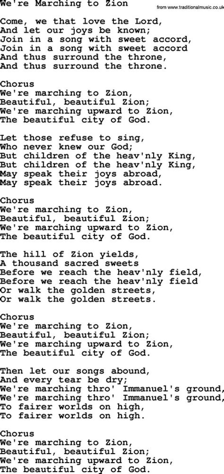 Marching to zion lyrics