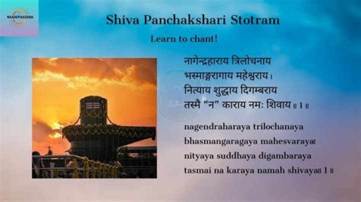 Nagendra haraya Trilochanaya,Basmanga ragaya maheswaraya,Nithyaya shudhaya digambaraya,Tasmai nakaraya namashivaya.My salutations to the letter "Na", which is Shiva,Who wears as garland the king of snakes.Who has three eyes,Who wears ash all over Him,Who is the ...Uma Mohan - Shiva Panchakshara Stotram / Shiva Shadakshara ...