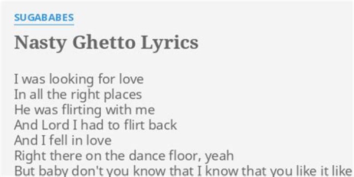 Lyrics to "Nasty Ghetto" song by SUGABABES: I was looking for love In all the right places He was flirting with me And Lord I had to flirt ba...Sugarbabes - Nasty Ghetto lyrics