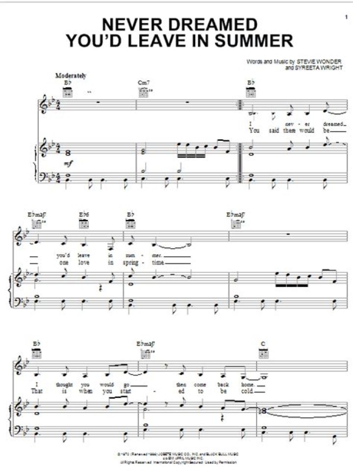 I never dreamed that you would leave me But now you're gone I never dreamed that I would miss you Woman won't you come back home I never dreamed that you could hurt me And leave me blue I've had a thousand, maybe more But never one like you I never dreamed I could feel so empty But now I'm down I never dreamed that I would beg youStevie Wonder - I Never Dreamed You'd Leave In Summer ...