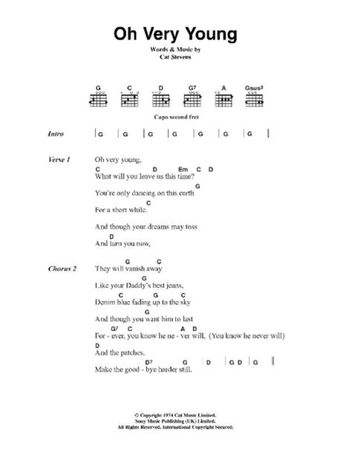 Cat Stevens - Oh Very Young Lyrics. Oh very young What will you leave us this time? You're only dancing on this earth for a short while And though your dreams ...Cat Stevens - Oh Very Young lyrics