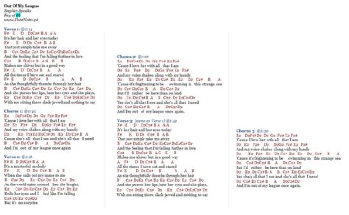 The Lyrics for Out of My League by Stephen Speaks have been translated into 3 languages. It's her hair and her eyes today That just simply take me away And the feeling that I'm falling further in love Makes me shiver but in a good way All the times I have sat and stared As she thoughtfully thumbs through her hair And she purses her lips, bats ...Like Pacific - AZLyrics