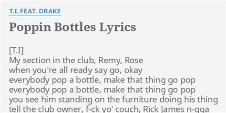 T.I. - Poppin` Bottles Lyrics. My section in the club, Remy, Rose When your maw ready say go, okay Everybody pop a bottle, make that thing go.