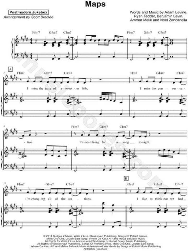 Maps Lyrics feat. Scott Bradlee's Postmodern Jukebox. from The Essentials. The Essentials Other Album Songs 1 We Can't Stop. 2 Maps. 3 Creep. 4 All About That Bass. 5 ...MAROON 5 LYRICS - Maps - A-Z Lyrics