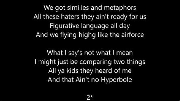 Get lyrics of Rap songs with figurative language song you love. List contains Rap songs with figurative language song lyrics of older one songs and hot new releases. Get known every word of your favorite song or start your own karaoke party tonight :-).