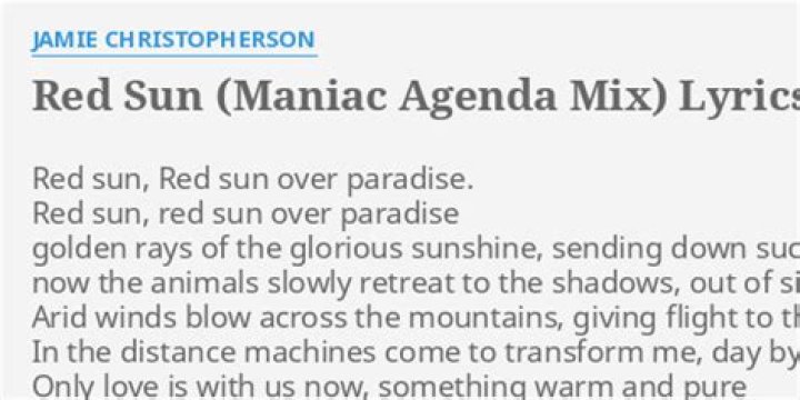 Get lyrics of Red sun (maniac agenda mix) ... song you love. List contains Red sun (maniac agenda mix) ... song lyrics of older one songs and hot new releases. Get known every word of your favorite song or start your own karaoke party tonight :-).