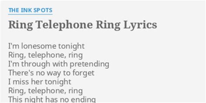 Glenn Miller Non-album songs Lyrics to Ring, Telephone, Ring Ring, Telephone, Ring Video: I'm lonesome tonight Ring, telephone, ring This night has no ending Help me try to forget I need her tonight Ring, telephone, ring There's no use pretending Dreams of her linger yet Like a couple of fools we parted I vowed Iâ??d never callTHE INK SPOTS - RING TELEPHONE RING (REMASTERED) LYRICS
