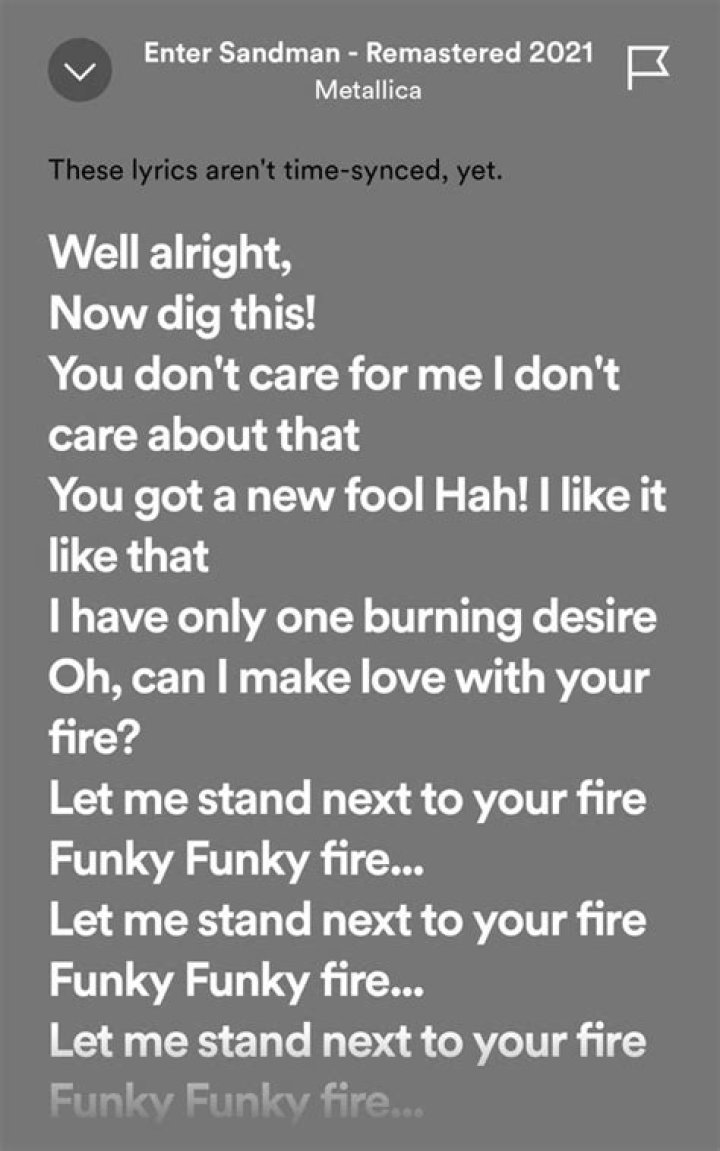 The Outfield - Sandman Lyrics. All good children ... Album: Replay. Heyo! SONGLYRICS just got interactive. ... Before the lights go down. If there's trouble in your ...SUN EATS HOURS - ENTER SANDMAN LYRICS